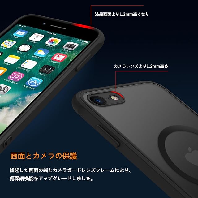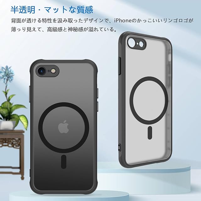 【対応機種】iPhone 専用です。精確にカット加工しているので、ボタンが押しやすく、ポートも使いやすくなっており、機能性に影響しません。<br> 【MagSafe対応・超強磁力】1,900 gの吸着力を備えた強力な内蔵磁石により、吸着力を高めて、安定感をアップしてエネ損失なしの快速ワイヤレス充電できる。様々な状況で安定した状態を保ちます。MagSafeバッテリー、MagSafeカードケース、MagSafeワイヤレス充電器、MagSafeリング、車載スタンドなど様々なMagSafeニーズに対応、Magsafeの便利さを満喫しましょう!<br> 【半透明・マットな質感】背面が透ける特性を汲み取ったデザインで、iPhoneのかっこいいリンゴロゴが薄っり見えて、高級感と神秘感が溢れている。背面のポリカーボネートは耐久性や耐摩耗性に優れ、長く使っても綺麗に見え。スマホに近い感覚を味わうことができ。<br> 【高耐衝撃性・カメラ保護】免震構造である高弾力バンパーと耐震構造である丈夫なポリカーボネート背面で組み合わせて、バランスが良く落下衝撃を本体に伝えにくくなる。隆起エッジにより、スマホを置いた時にスクリーンやカメラが擦れにくくなり、傷から保護することができます。<br> 【スリム・軽量】この握りやすいケースは、厚さたった1.2 cmなので、スマホに近い感覚を味わうことができ、ケースをつけたままコネクタへの接続が可能で。<br> 【品質】iPhone ケースを安心してお使いいただくために、当店は製品に関する品質を提供します。製品に不具合がある場合、注文履歴画面より出品者にご連絡いただき、お問い合わせ内容に応じて、交換などの対応が可能です。<br>