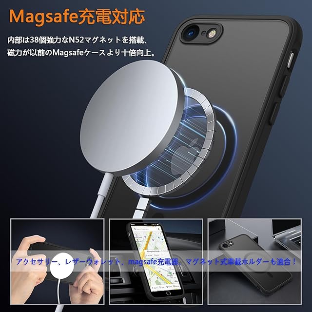 iphone se ケース iphone se3/se2 ケース スマホカバー マット半透明 マグネット搭載 ワイヤレス充電 耐衝撃 指紋防止 滑り止め 米軍MIL規格・Magsafe対応 アイフォンse2 se3 7 8 用カバー 4.7インチ PinLiSheng (黒いロープ, iPhone SE2 iPhone SE3 iPhone8 iPhone7)