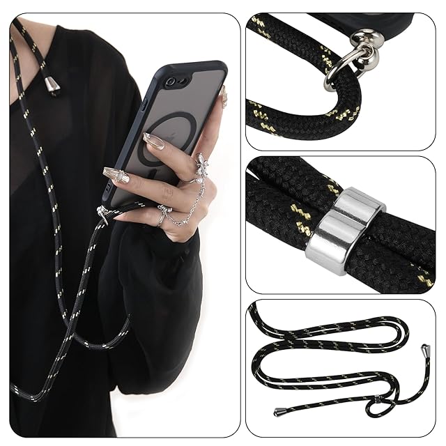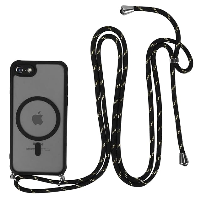 商品名:iphone se ケース iphone se3/se2 ケース スマホカバー マット半透明 マグネット搭載 ワイヤレス充電 耐衝撃 指紋防止 滑り止め 米軍MIL規格・Magsafe対応 アイフォンse2 se3 7 8 用カバー 4.7インチ PinLiSheng (黒いロープ, iPhone SE2 iPhone SE3 iPhone8 iPhone7)