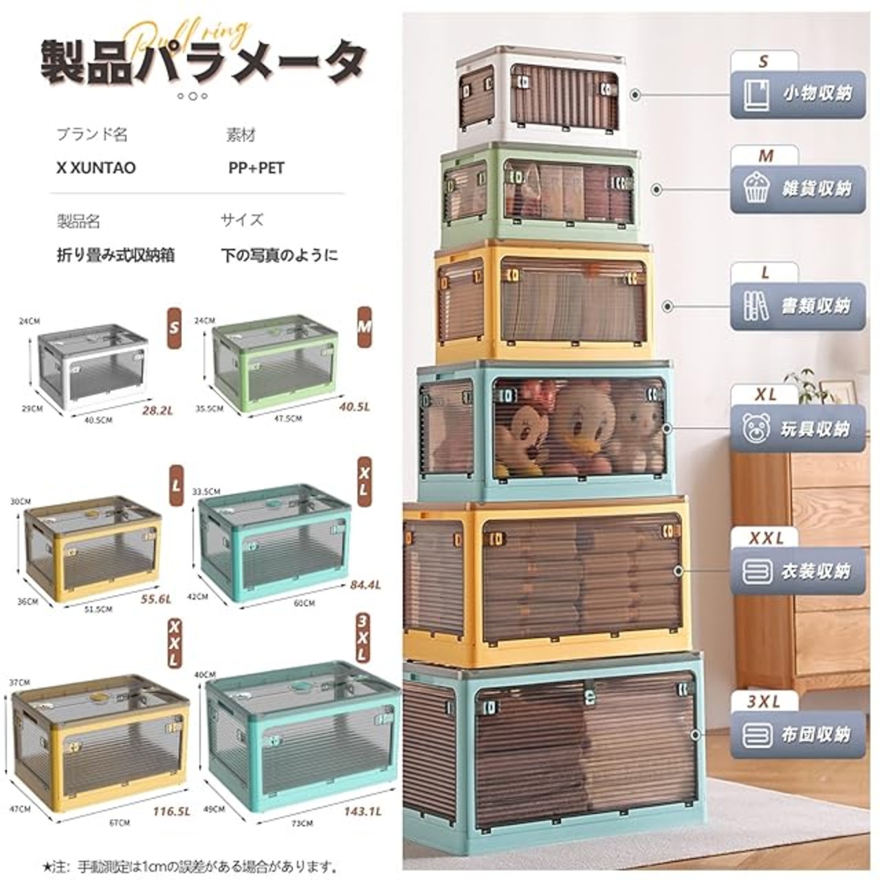 商品名:X XUNTAO【収納ボックス 折りたたみ】蓋付き 積み重ね 全方向から取り出せる 収納ケース 衣類 布団 小物 収納 折り畳み コンテナ ボックス 大型 プラスチック キャスター付き おしゃれ 組立簡単 多機能 防塵 防カビ 防湿 無臭 半透明 厚み 強い耐荷重 大容量 家庭用 車用 複数のサイズ 各種カラー(M,47.5cm*35.5cm*24cm,40.5L)