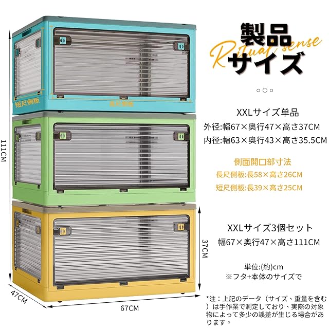商品名:X XUNTAO【収納ボックス 折りたたみ】蓋付き 積み重ね 全方向から取り出せる 3個セット 収納ケース 衣類 布団 小物 収納 折り畳み コンテナ ボックス 大型 プラスチック キャスター付き おしゃれ 多機能 防塵 防カビ 防湿 無臭 半透明 厚み 強い耐荷重 大容量 家庭用 車用 複数のサイズ 各種カラー(XXL3個セット,67cm*47cm*37cm,116.5L)