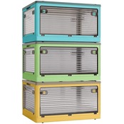 【組立簡単▪積み重ね】折りたたみ式なので、ツールなしで簡単に組み立てます。使用しないときは折りたたんで収納できます(高さ7cm)、車内や室内のちょっとした隙間に置くことができます。溝が付いているので、積み重ねて使用することで、効率よく収納スペースが活用できる収納ボックスです。側面から物が取られる、何段が積まれていても箱を運んで物を取る必要がありません。側面扉から開けて物を取りやすい、時間もかかりません。