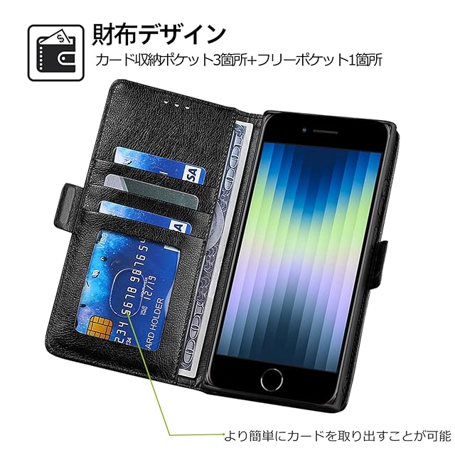 商品名:iPhone SE2 ケース 第2世代 第3世代 iphone8/7 ケース 手帳型 スマホケース 携帯カバー PUレザー カード収納ケース マグネット式 スタンド機能アイフォンse 4.7インチ対応 360度保護 PinLiSheng (ブラックの分割, iPhone SE2 iPhone SE3 iPhone8 iPhone7)