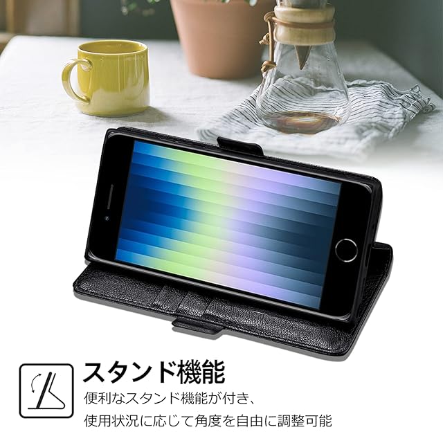 対応機種: iPhone SE 第3世代(2022)/ iPhone SE 第2世代(2020)/ iPhone8 / iPhone7 ケース 手帳型<br> ●なめらかな質感で、誰の手にも馴染むシンプルな形とカラーを採用したiPhone 用ソフトレザーケース(手帳型)です。<br> ●本体装着部分に衝撃を吸収するTPU素材を使用し、機器本体を衝撃から守ります。<br> ●コーナーにエアクッションを使用し、耐衝撃性を高めています。<br> ●内側に2つのポケットが付いており、カードや名刺、メモなどの収納に最適です。<br> ●未使用時に液晶画面部分をカバーする横開きタイプのフラップが付いています。<br> ●マグネット付きフラップなので、簡単に開け閉め可能です。<br> ●背面を折り曲げることでスタンドとして使用でき、動画視聴などを快適に楽しめます。<br> ●お好みのストラップが取り付け可能なストラップリングが付いています。※ストラップは付属していません。<br> ●ケースを装着したままで、純正の各種ケーブルの接続や写真撮影、ボタンの操作が可能です。<br> ●本製品はワイヤレス充電に対応しています。 ※お使いの充電器や環境によっては正常に充電できない場合があります。<br>