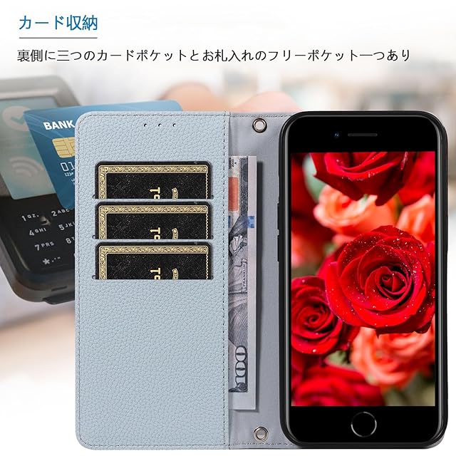 【カード収納】内側にはのカード入れとフリーポケットがつき、名刺や定期券の収納に優れているアイフォン ケースです。普段の生活に便利をもたらします。