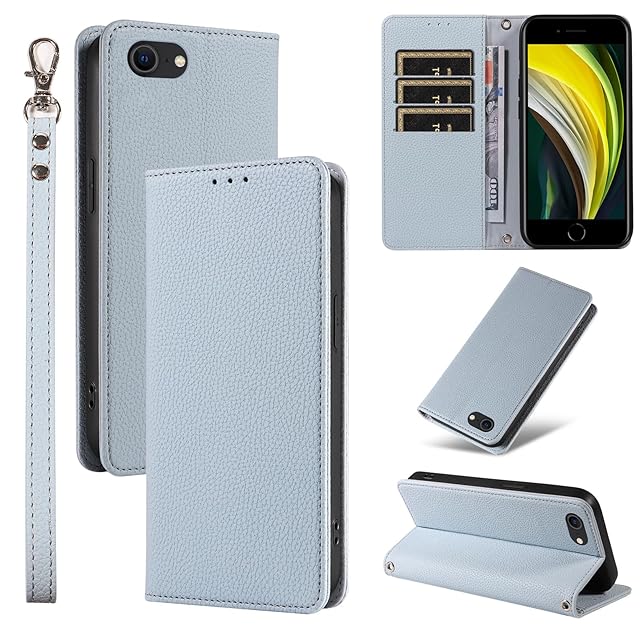 商品名:iPhone SE2 ケース 第2世代 第3世代 iphone8/7/6S/6 ケース 手帳型 スマホケース 携帯カバー PUレザー カード収納ケース マグネット式 スタンド機能アイフォンse 4.7インチ対応 360度保護 PinLiSheng (ライトブルー, iPhone SE2/SE3/iPhone8/iPhone7 iPhone 6/6S)