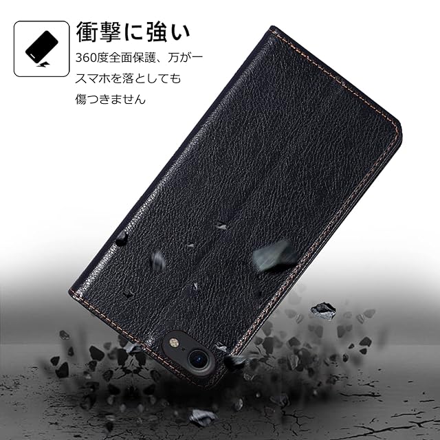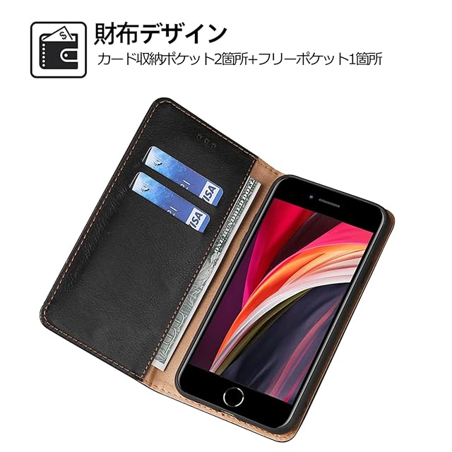 iPhone SE ケース 第2世代 第3世代 iphone8/7 ケース 手帳型 スマホケース 携帯カバー PUレザー カード収納ケース マグネット式 スタンド機能アイフォンse 4.7インチ対応 360度保護 PinLiSheng (ダークブラック, iPhone SE2 iPhone SE3 iPhone8 iPhone7)