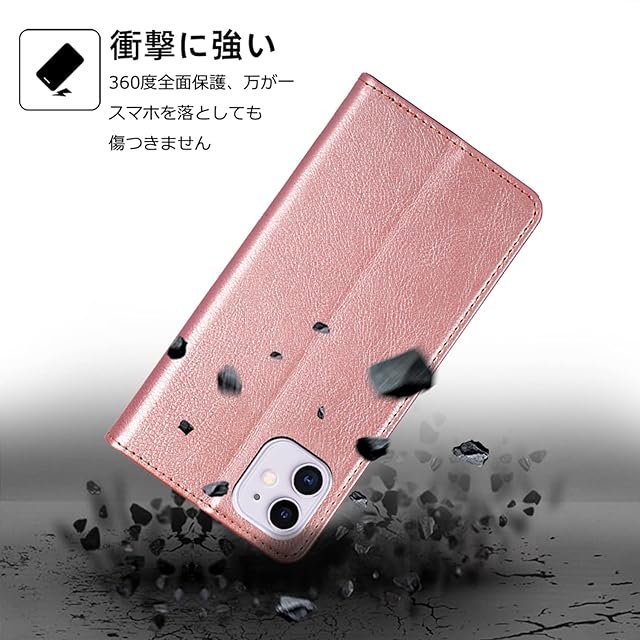 商品名:iPhone 11 ケース イフォン11 スマホケース 手帳型 携帯カバー レザー 耐衝撃 軽量 着脱しやすい 放熱性 マグネット式 カード収納 スタンド機能 iphone 11 対応 360度保護 PinLiSheng (ライトローズゴールド, iphone 11)