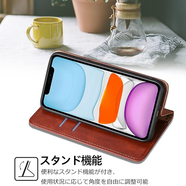商品名:iPhone 11 ケース イフォン11 スマホケース 手帳型 携帯カバー レザー 耐衝撃 軽量 着脱しやすい 放熱性 マグネット式 カード収納 スタンド機能 iphone 11 対応 360度保護 PinLiSheng (コーヒー色, iphone 11)
