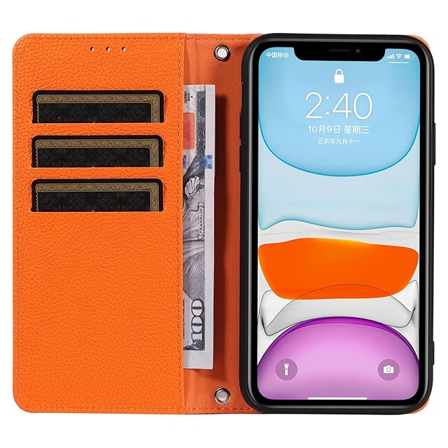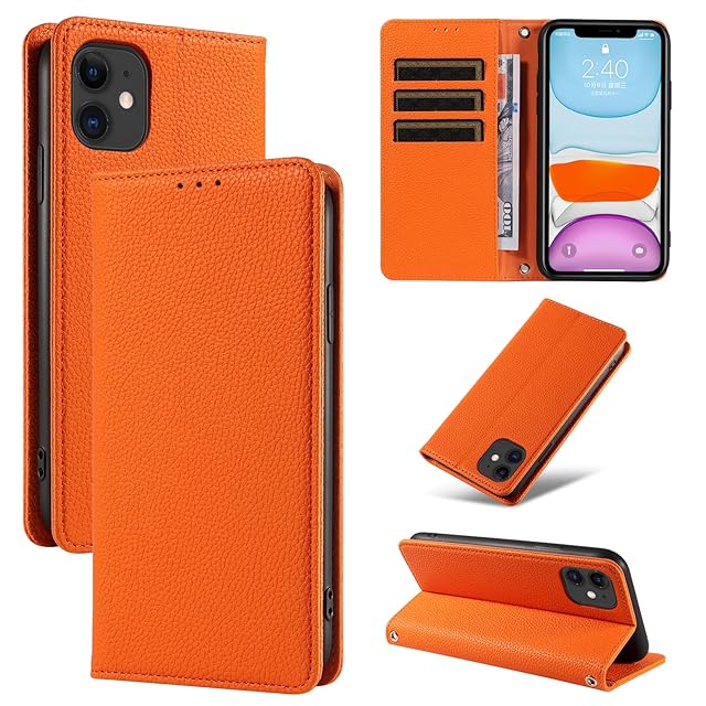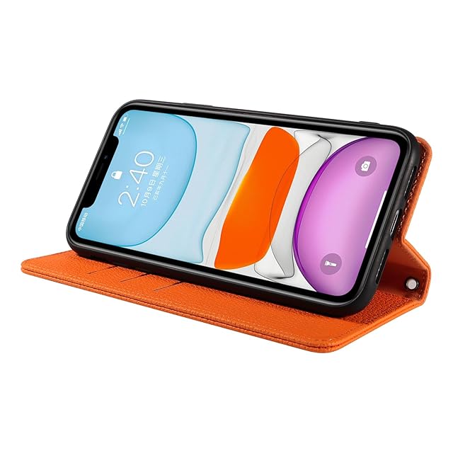 商品名:iPhone 11 ケース イフォン11 スマホケース 手帳型 携帯カバー レザー 耐衝撃 軽量 着脱しやすい 放熱性 マグネット式 カード収納 スタンド機能 iphone 11 対応 360度保護 PinLiSheng (オレンジ, iphone 11)