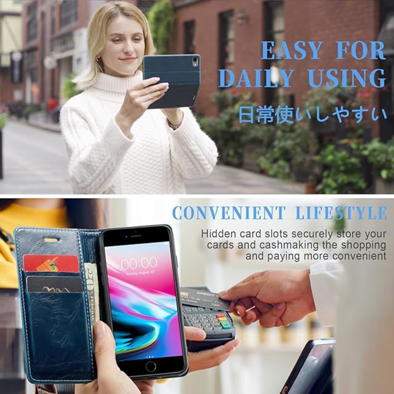 【カード収納】内側にはのカード入れとフリーポケットがつき、名刺や定期券の収納に優れているアイフォン ケースです。普段の生活に便利をもたらします。