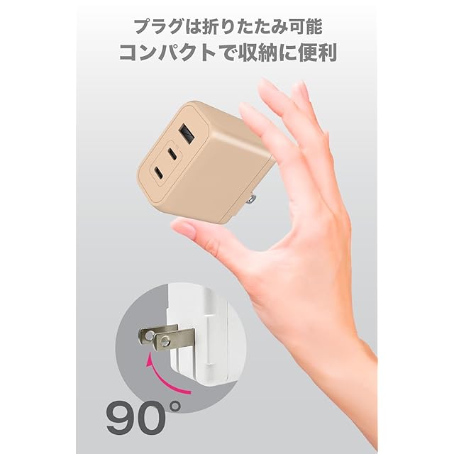 商品名:多摩電子工業 PD65W対応 AC充電器 USB x3ポート(USB-C x2、USB-A x1)Permier PR-AP146UC2T GaN採用 急速充電 ACアダプター 新型GaN 窒化ガリウム採用 PSE技術基準適合 折りたたみ式プラグ iPhone15/ 16 / 17 /17 Pro/17 Pro Max/iPhone Air/Android/MacBook(カフェラテ)