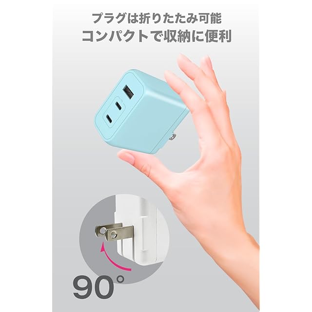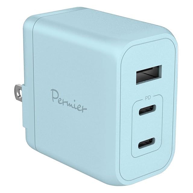 商品名:多摩電子工業 PD65W対応 AC充電器 USB x3ポート(USB-C x2、USB-A x1)Permier PR-AP146UC2L GaN採用 急速充電 ACアダプター 新型GaN 窒化ガリウム採用 PSE技術基準適合 折りたたみ式プラグ iPhone15/ 16 / 17 /17 Pro/17 Pro Max/iPhone Air/Android/MacBook (ベビーブルー)