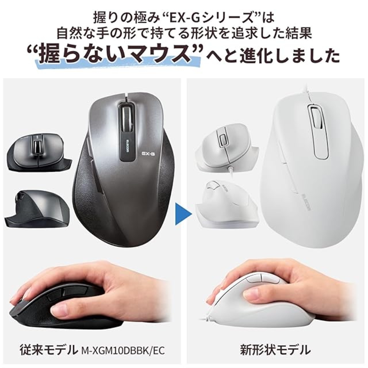 商品名:エレコム 有線マウス EX-G 静音 Mサイズ 5ボタン 「AskDoctors評価サービス」認証 抗菌 ホワイト M-XGM30UBSKWH
