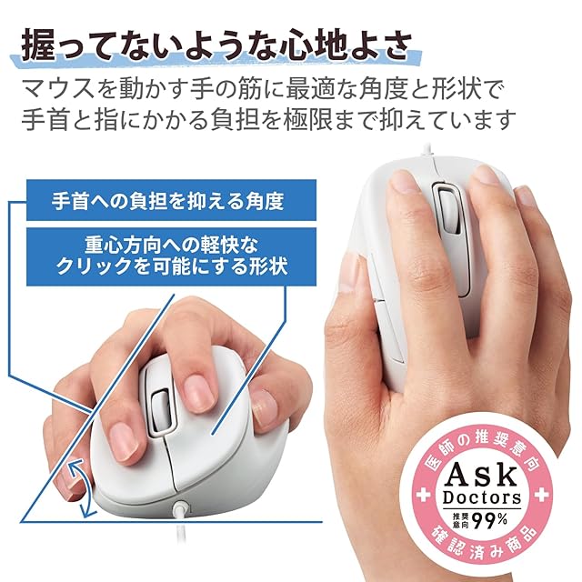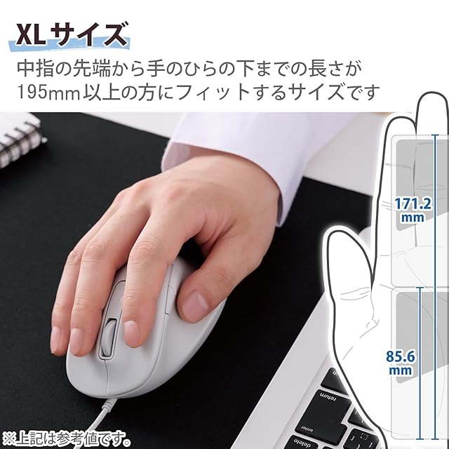 商品名:エレコム 有線マウス EX-G 静音 XLサイズ 5ボタン 「AskDoctors評価サービス」認証 抗菌 ホワイト M-XGXL30UBSKWH