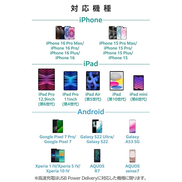 USB Power Delivery(パワーデリバリー)とは、アダプターと接続機器間で情報をやり取りすることで、その機器間における最適な電力を選択し、高速充電を実現するUSB規格です。