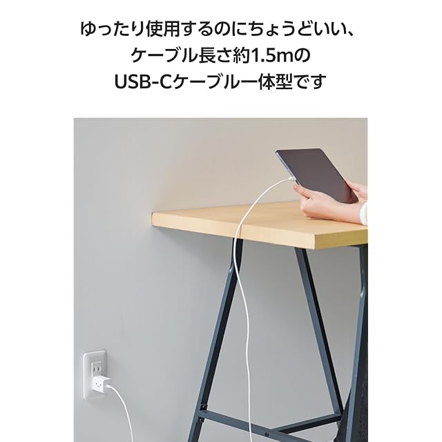 USB Type-Cポートを搭載する機器に挿すだけで充電できるケーブル一体型です。