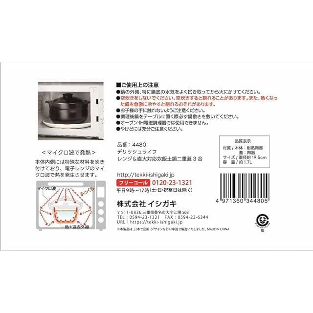 商品名:イシガキ DLレンジ&直火対応 炊飯土鍋 二重蓋3合 4480