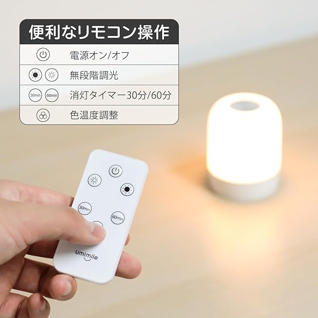 商品名:Umimile 授乳ライト ナイトライト ベッドサイドランプ 充電式 タイマー付き 調光調色 タッチ 間接照明 常夜灯 メモリー機能 マグネット付き 枕元ライト 寝室 LED 出産祝い ギフト リモコン付き 防災