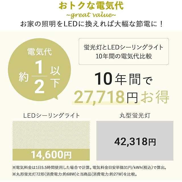 【シンプル設計のLEDシーリングライト】スッキリした薄型デザインで和室にも洋室にも合うシンプルなLEDシーリングライト。器具光束3600lmでお部屋をしっかり明るく照らします。取付は簡単で、届いたその日からお使いいただけます。※取付可能な配線器具:角形引掛シーリング、丸形引掛シーリング、丸形フル引掛シーリングライト、フル引掛ローゼット、耳なし埋込ローゼット、耳つき埋込ローゼット。※配線器具の交換が必要な場合は、工事店や電器店にご依頼ください