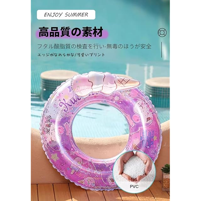2.高品質の素材:浮き輪には耐久性に優れた-pvc材質を使用しております。en71認証を取得しました。無毒、無害です。更に空気栓について空気の注入と排出がしやすくて、短時間で浮き輪の用意ができ、長く使えます。