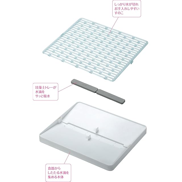 素材・原材料:素材・材質(:本体)ABS樹脂 (吸水トレー)珪藻土 (すのこ)AS樹脂