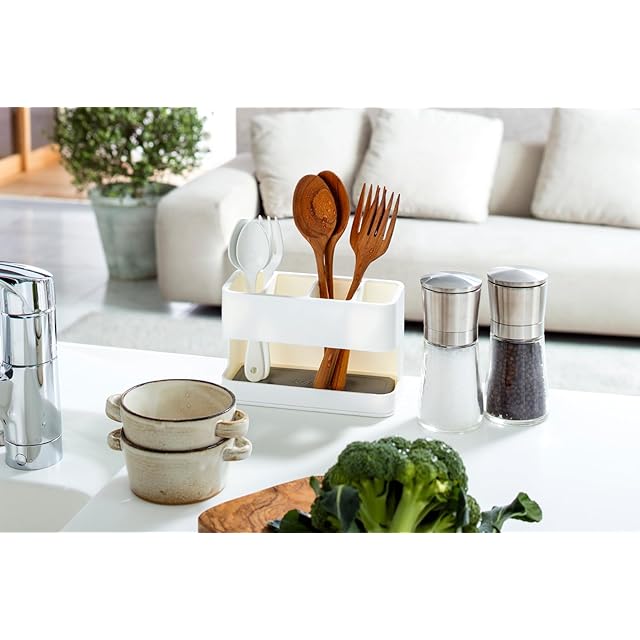 アネスティ 樹脂 珪藻土 水切り karari カトラリー スタンド 角型 ホワイト 約幅15×奥6.5cm×高10cm HO1945