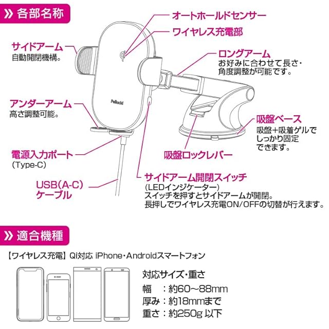 商品名:ペルシード(Pellucid) 車内用品 スマホホルダー 自動開閉ロングアーム 吸盤貼付けタイプ PPH2308