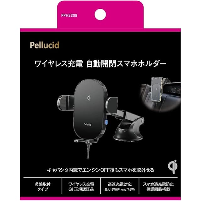 ペルシード(Pellucid) 車内用品 スマホホルダー 自動開閉ロングアーム 吸盤貼付けタイプ PPH2308
