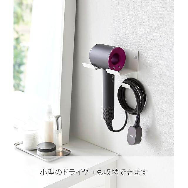 山崎実業(Yamazaki) 【 石こうボードピンセット・木ネジ 付属 】 石こうボード壁対応 ウォールドライヤーホルダー ホワイト 約W16×D9.3×H11.8cm タワー tower ドライヤー収納 コードもまとめて収納 4508