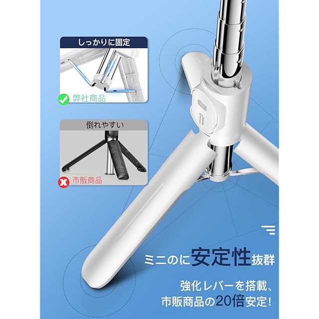 【小型のに安定性が劣らない】アンケート結果によると、従来の小型自撮り棒は安定性が弱い、倒れやすいなどの悩みがあります。MACOO自撮り棒の三脚は頑丈な傘状構造が搭載、底部は滑り止めゴム素材の使用で、ダブル安定感が実現、倒れのことがありません。更に、本社のじどり棒は航空グレード素材ステンレス鋼を採用し、軽量で耐久性を高める、女性、子供でも気兼ねなく持て、旅行の撮影には最適です。