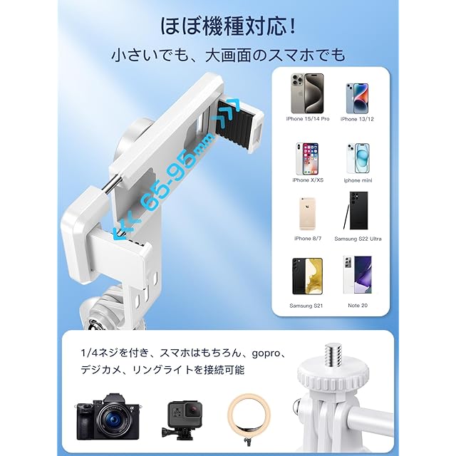 商品名:自撮り棒 スマホスタンド 三脚 スマホ アクションカメラ デジカメ兼用 じどり棒 (white)
