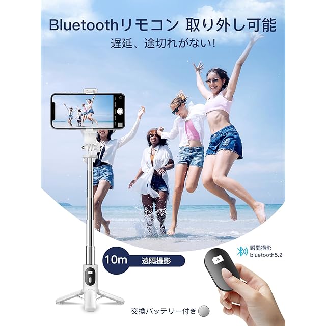 【0遅延で写真を撮れる】自撮り棒の無線リモコンは最先端ブルートゥース5.2技術を採用、通信範囲や伝送速度が大幅にアップするため、境に左右されない優れた接続安定性を実現していて、ワンタップですぐに撮れる、遅延、途切れがありません。10m遠隔撮影が対応、家族写真、一人旅など素晴らしい全身写真が実現できます。初心者にも簡単操作できる、初期接続が完了すると、セルカ棒のリモコンは電源をオフにしても設定が残ります。再度電源オンにして、自動で最後に接続されていたスマホへ瞬時接続を実現しました。*ブルートゥース機能が搭載されるAndroidとiOSのスマホに対応可能です。