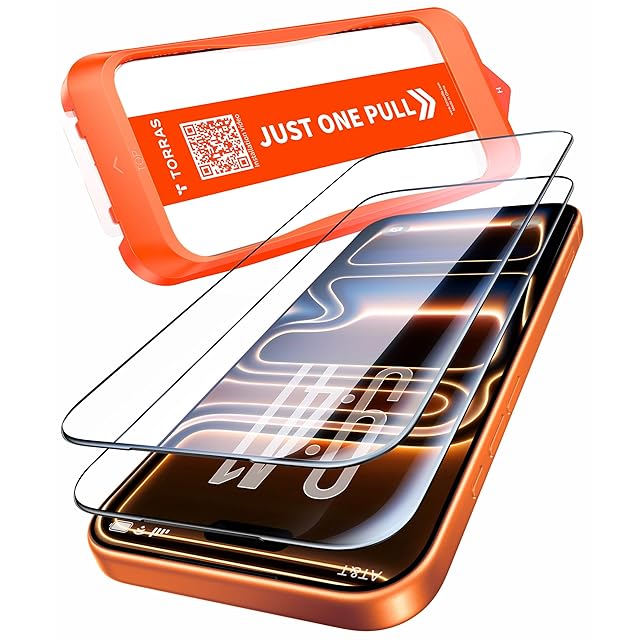 【画期的な「ワンプル(Just One Pull)ガイド枠」で一発貼り・プロ級の仕上がりを誰でも】TORRASの「ワンプル(Just One Pull)ガイド枠」をスマホにセットして一度引くだけで、位置合わせから貼り付けまで完了。CNC精度に基づくフレームガイドと進化した静電気除塵システムが屋内外の微細な埃を素早く吸着し、ほぼ0気泡・0ズレの美しい仕上がりを実現。貼り直しやショップでの貼付代行が不要になり、交換コストを大幅に削減。(ご注意:模倣品の粗悪なフレームは角が鋭く表面も荒いため、装着時に本体の縁を擦り傷つける恐れがあります。一方、ワンプル(Just One Pull)ガイド枠は、エッジが平滑に面取りされており、本体に余計な負担をかけずスムーズに装着可能です。仕上げもなめらかで、装着時の引っかかりや小傷を防ぎ、iPhone 17 Pro Max 本体の美しさを長く保ちます)