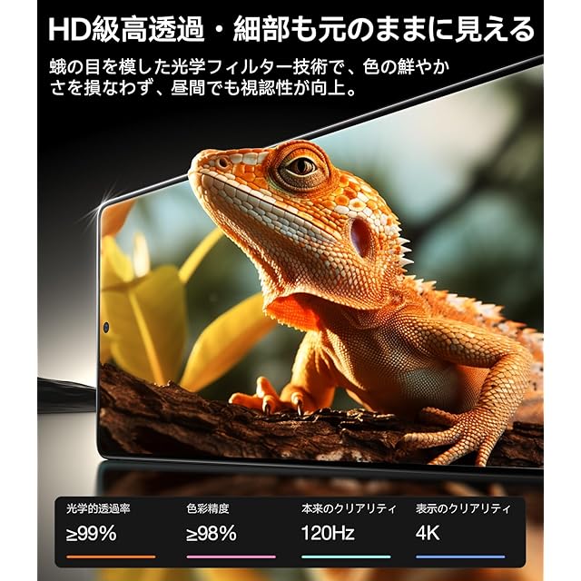 【HD級高透過・細部も元のままに】蛾の目の精密な構造を模倣して開発したフィルター技術は蛾の目が持つ独自の視覚能力を活かし、画質を損なわずディスプレイの色彩やディテールが忠実に再現し、昼光の下でもクリアで鮮明な映像を提供。映画やゲームなどのエンターテイメントだけでなく、日中の仕事や読書時にも優れた視覚体験を実現。GalaxyS25Ultra用フルセットガラスフィルムは視覚的な快適さと高品質な映像体験を両立させる。