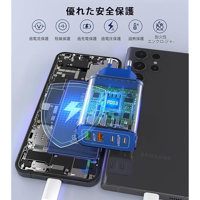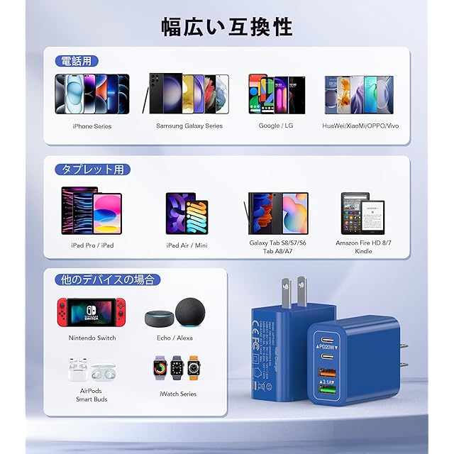 商品名:20W PD 急速充電 USB コンセント iPhone Type-C 充電器 ACアダプター USBポートA &Cポート アダプタ タイプc USB 電源タップ iPhone iPad Android その他各種機器対応 (ブルー)