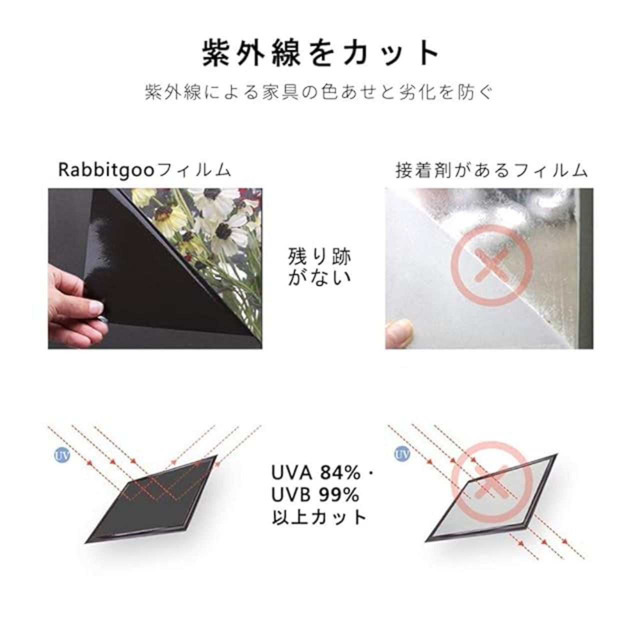 遮光・目隠し・UVカット:昼夜を問わず、外からはほとんどみえない!朝、光漏れが減って優しくなります。夜、カーテンを開いても外から光が通さずぐっすりと眠れます。UVA 84%・UVB99% 以上カットし、色褪せ対策として内装をきちんと守ります。
