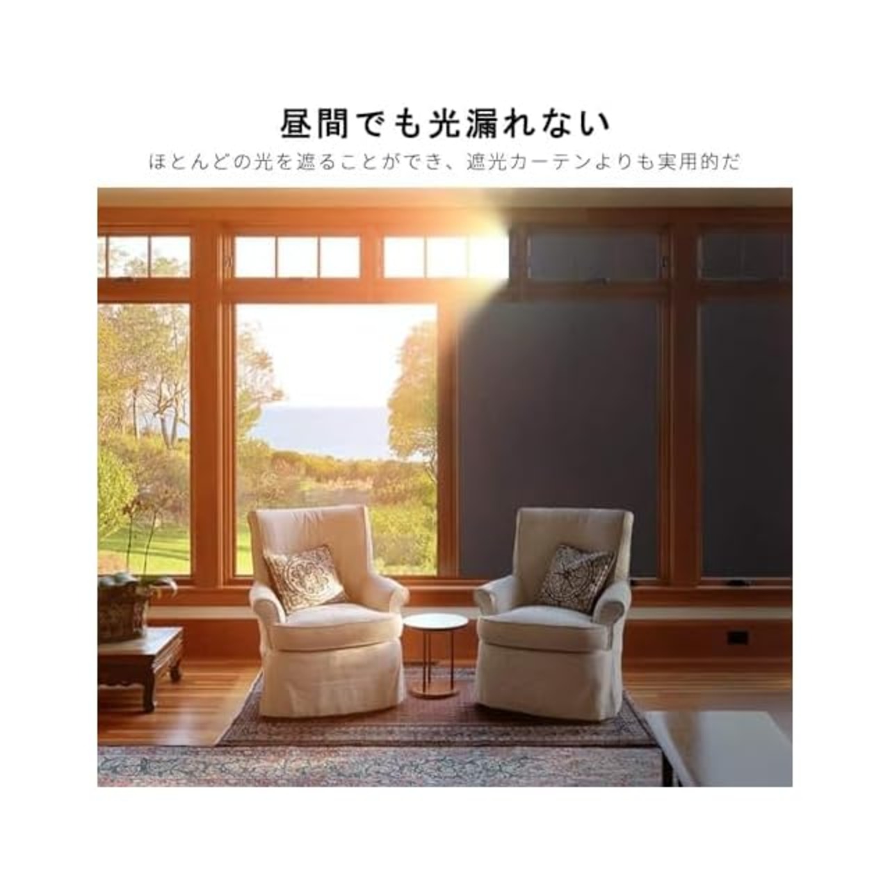 遮光・目隠し・UVカット:昼夜を問わず、外からはほとんどみえない!朝、光漏れが減って優しくなります。夜、カーテンを開いても外から光が通さずぐっすりと眠れます。UVA 84%・UVB99% 以上カットし、色褪せ対策として内装をきちんと守ります。
