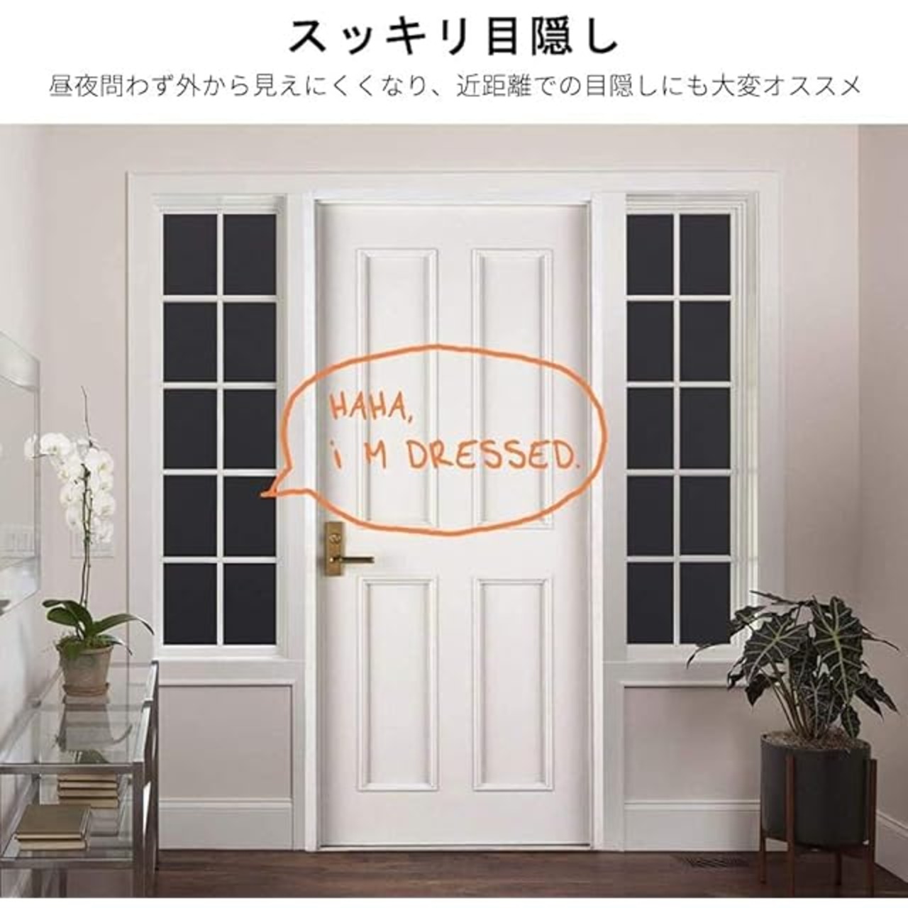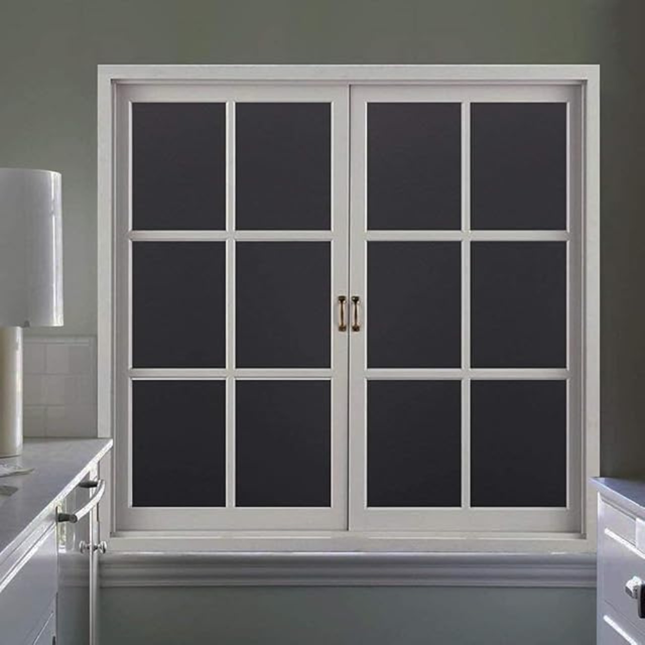 伝言板・リメイク可能:キレイめがお好きなお客様にもオススメ!この真っ黒で98%不透明のフィルムは遮光性、目隠し効果が抜群な代わりに、見た目がやや地味ですが、上にチョークで絵や文字を描いたりできるので、伝言板として使えるだけではなく、ご自由にリメイクできます。