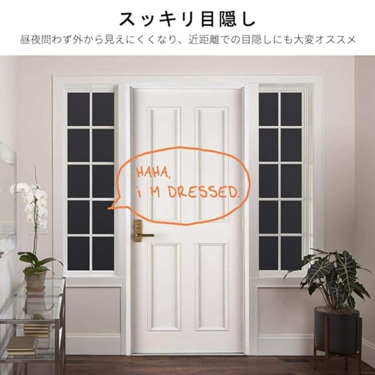 伝言板・リメイク可能:キレイめがお好きなお客様にもオススメ!この真っ黒で98%不透明のフィルムは遮光性、目隠し効果が抜群な代わりに、見た目がやや地味ですが、上にチョークで絵や文字を描いたりできるので、伝言板として使えるだけではなく、ご自由にリメイクできます。