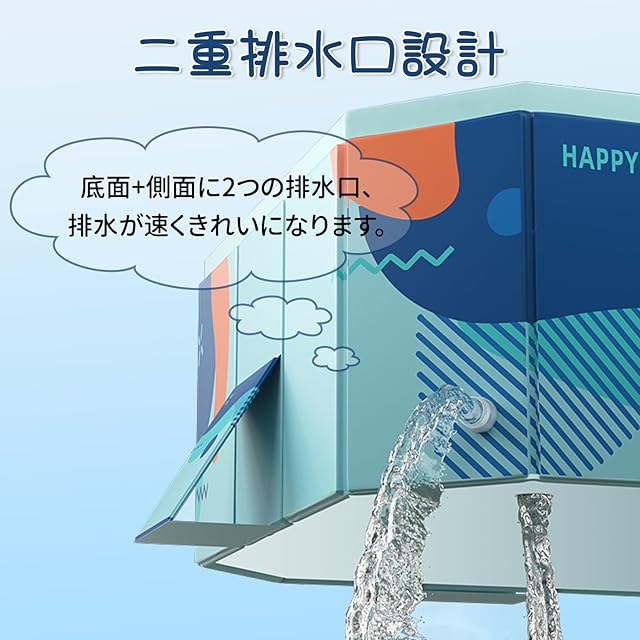 【二重排水口設計・収納便利】新型ノーインストールフォールディングブラケットキディプール!排水口は底面と側面に1つずつあります。 2つの排水口で、より速く、よりきれいに排水することができます。折りたたみ式で持ち運びやすいデザインが特徴で、小さく折りたたんで収納・持ち運びができ、キャンプや旅行に適しているほか、自宅での収納スペースを確保することができます。