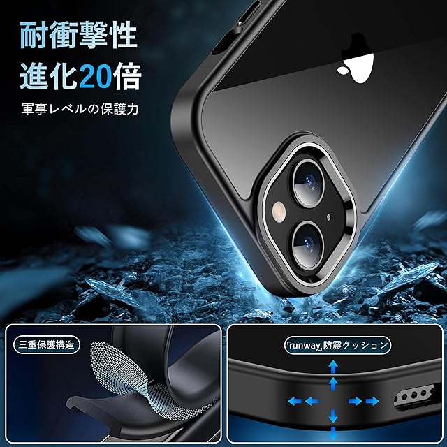 商品名:iphone15 用 ケース ブラック 耐衝撃 カメラレンズ保護付き アイフォン15 用 ケース 米軍MIL規格 耐久性 黄ばみ防止 アイホン15 用 ケース ワイヤレス充電対応 対応 SGS認証 スマホケース カバー 6.1インチ XIWXI