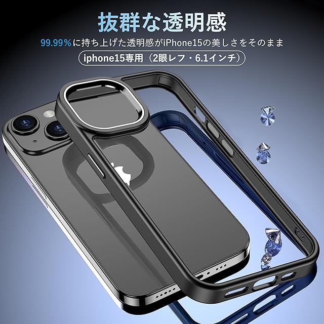 【高級感漂う・透明感抜群】 99.99%に持ち上げた透明感がiphone15の美しさをそのまま。厳選した高透明度、更に耐黄変に強い特殊なポリカーボネート素材を採用、指紋がつきにくい・黄ばんでなく正真正銘のクリア!本来の崇高な美しさと高級感を損なわなく、いつものスマホに上品さをプラス。
