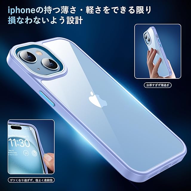 商品名:iPhone15 ケース ペールパープル 耐衝撃 カメラレンズ保護付き アイフォン15ケース 米軍MIL規格 耐久性 黄ばみ防止 アイホン15 ワイヤレス充電対応 あいほん15 SGS認証 スマホケース あいふぉん15 カバー 透明 6.1インチ XIWXI