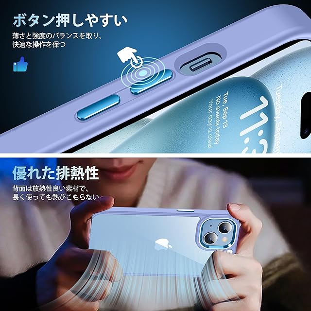 【高級感漂う・透明感抜群】 99.99%に持ち上げた透明感がiPhone15の美しさをそのまま。厳選した高透明度、更に耐黄変に強い特殊なポリカーボネート素材を採用、指紋がつきにくい・黄ばんでなく正真正銘のクリア!本来の崇高な美しさと高級感を損なわなく、いつものスマホに上品さをプラス。