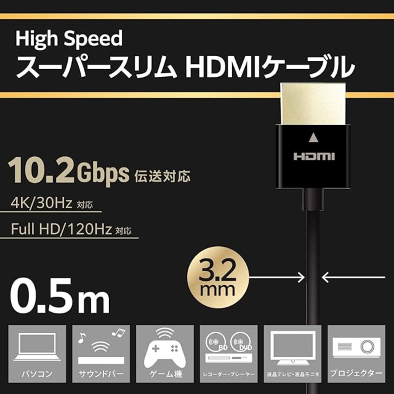 エレコム HDMI ケーブル 50cm 4K×2K対応 スーパースリム 環境に配慮した簡易パッケージ ブラック ECDH-HD14SS05BK