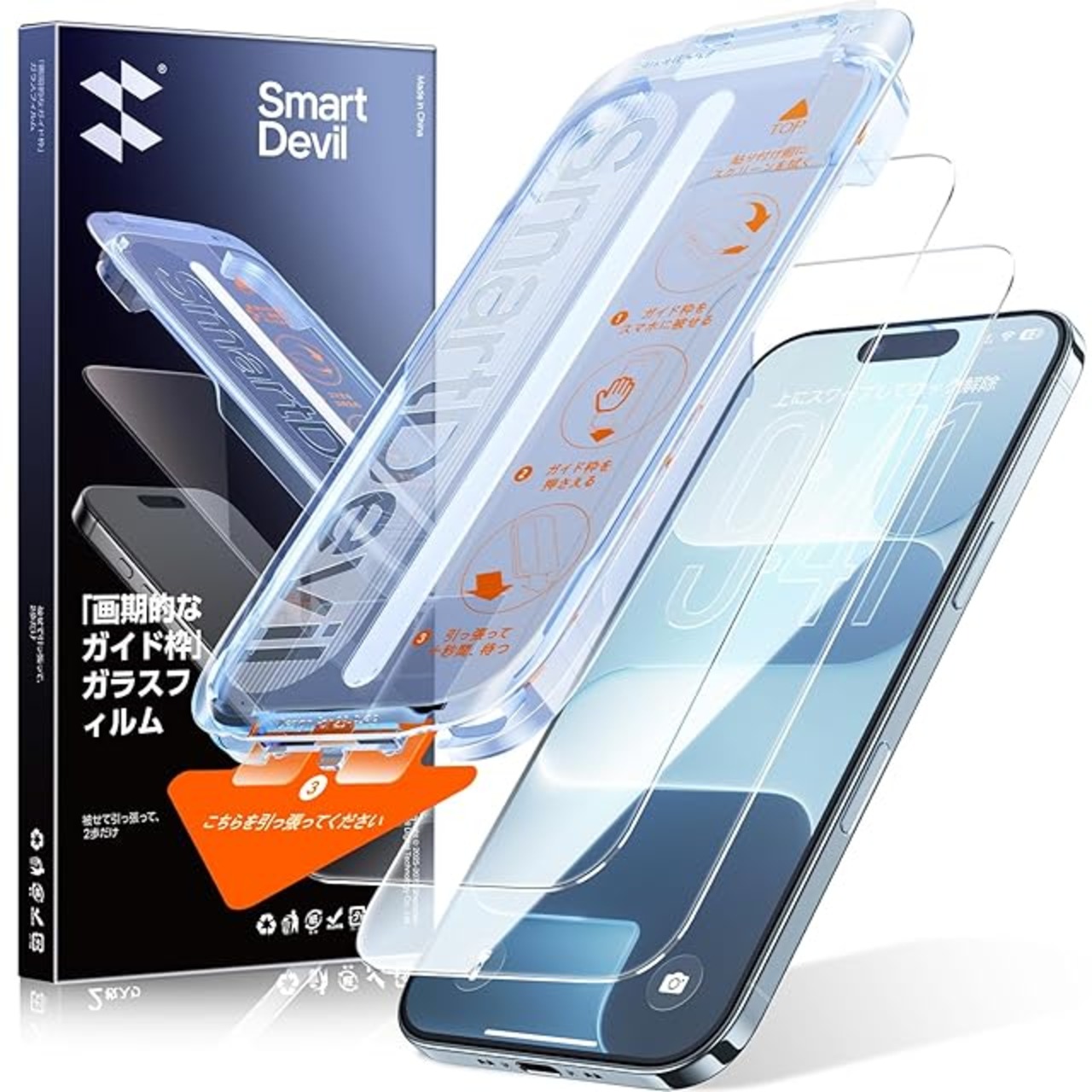 商品名:【0気泡を3秒で完成】SmartDevil iPhone Air用ガラスフィルム 2枚セット ガイド枠付き 貼り付け超簡単 自動除塵 米軍MIL規格 黒縁なし 落下保護 滑らかな手触り iPhoneAir対応 保護フィルム