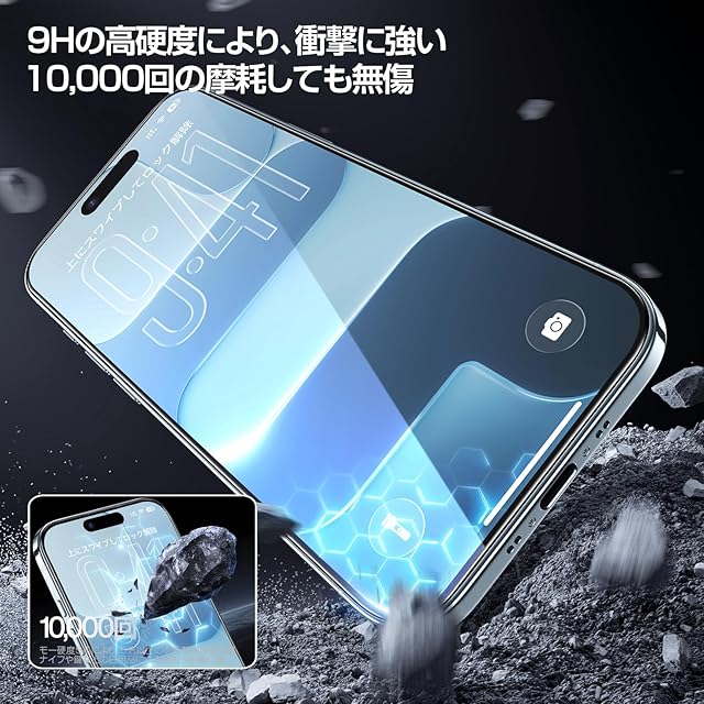 【業界最強の硬度水準】SGS米軍落下保護規格の認証を取得しました!二次強化硬度と7層の複合構造で、超高温Na+/k+イオン交換技術など、多くの画期的な加工技術を採用し、9Hの硬度を超えるモース硬度5を実現します。5,000回の極限耐摩耗性テストで、小刀や鍵などの鋭利な物品でも擦り傷が付かられません!