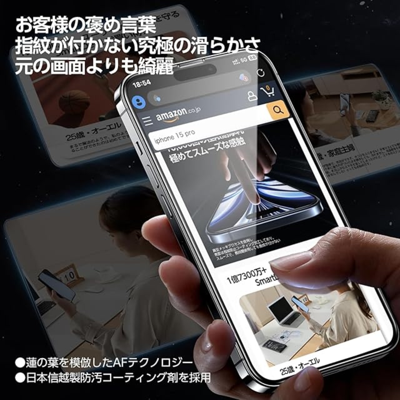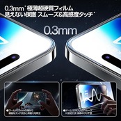 【究極のスムーズな感触・指紋防止】ハスの葉を模倣したAFテクノロジーや日本信越製防汚コーティング剤を採用し、耐水性、耐油性、耐指紋性を持つ防汚ナノコーティングが形成され、指紋を気にすることなく日常的に使用し、画面を綺麗に保つできます。極限摩擦を10,000回繰り返しても、究極の滑らかな高感度タッチを保ち続けます。1億3700万人を超えるユーザーから絶賛され、非常に優れたご利用体験となっております。実物機種で1:1ベースの金型製作に基づいて、iPhone14proのための最も適した強化ガラスフィルムで、貼付け時の失敗が大幅に軽減されます。