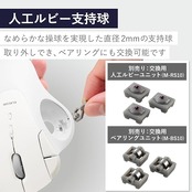 支持ユニットに直径2mmの人工ルビーを採用。従来品よりも自然でなめらかな操球を実現しました。支持ユニットは簡単に取り外し可能で、人工ルビーはもちろん、ベアリングにも交換可能です。※交換用の人工ルビーユニット(M-RS10)及びベアリングユニット(M-BS10)は別売です。
